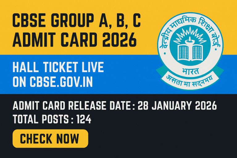 CBSE Group A B C Admit Card 2026 : Hall ticket live on cbse.gov.in.